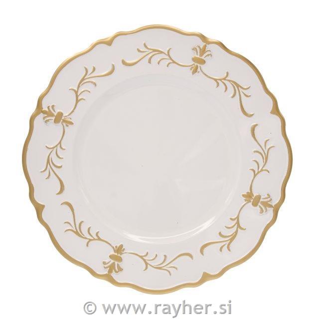 Krožnik, pladenj 33x33x2cm bel/zlat Rustic