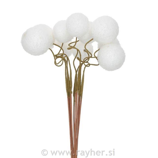 V setu je 10 zasneženih bunkic v beli barvi na 65cm dolgi trdi žici. Bunkice bodo čudovito popestrile vaš praznični aranžma in vaš dom.