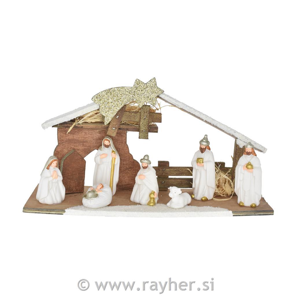 Tradicionalne jaslice z vgrajeno LED osvetlitvijo bodo v vaš dom prinesle toplino in praznično vzdušje. Mehka svetloba osvetli podrobnosti in ustvari čarobno božično atmosfero. Z dimenzijami 30,5 × 10 × 16 cm so primerne za postavitev na mizo, polico ali kot osrednji praznični okras. Jaslice združujejo simboliko božiča z moderno osvetlitvijo za še večji učinek.
