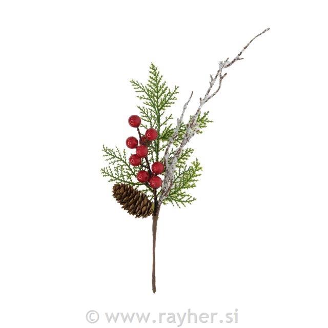 Vejica z rdečimi bunkicami in storžem (bunkice so iz lahke mase in so svetleče) - 35cm.