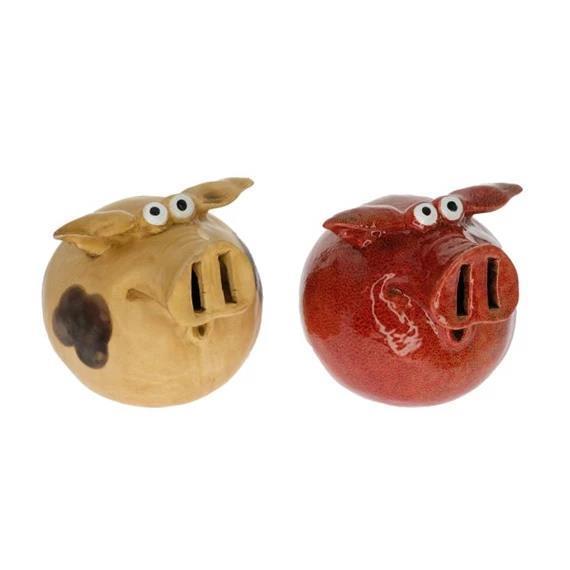 Prikupen hranilnik z motivom pujsa ima odprtino za vstavljanje denarja na rilčku. Na spodnji strani je odprtina za odpiranje s ključkom.