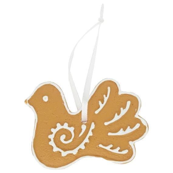 Prisrčen okrasek v obliki ptice, oblikovan v stilu medenjakov, bo popestril vaše praznično drevo ali zimske aranžmaje. Rjava osnova z belimi detajli daje občutek domačnosti in prazničnega veselja. Zaradi svoje velikosti 7,7 × 0,6 × 5,7 cm je idealen kot del božične dekoracije ali kot droben dodatek pri obdarovanju.