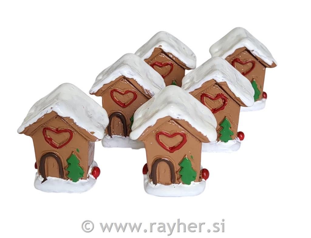 Majhna dekorativna hišica v videzu medenjaka bo prikupen detajl vaših prazničnih okraskov. Rjava barva z belimi detajli spominja na klasične praznične medenjake, ki v dom vnesejo toplino in domačnost. Zaradi kompaktne velikosti 2,7 × 2,2 × 3,2 cm je popolna za okrasitev božičnega drevesa, miznih aranžmajev ali kot droben dodatek pri darilih.