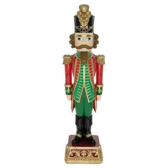 Impozantna figura hrestača v klasični barvni kombinaciji rdeče, zelene in zlate bo prava paša za oči v vašem prazničnem domu. Z višino 66 cm je odlična kot osrednji dekorativni element ob božičnem drevesu, na vhodu ali v dnevnem prostoru. Tradicionalni videz hrestača simbolizira praznično veselje in pravljičnost ter vnese občutek elegance in topline v vsak ambient.