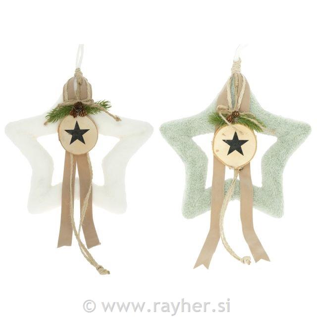 Zvezda odeta v plis ( bel ali svetlo moder) z lesenim diskom, trakovi in vrvico za obešanje je čudovita praznična dekoracija za vaš dom, pisarno,...