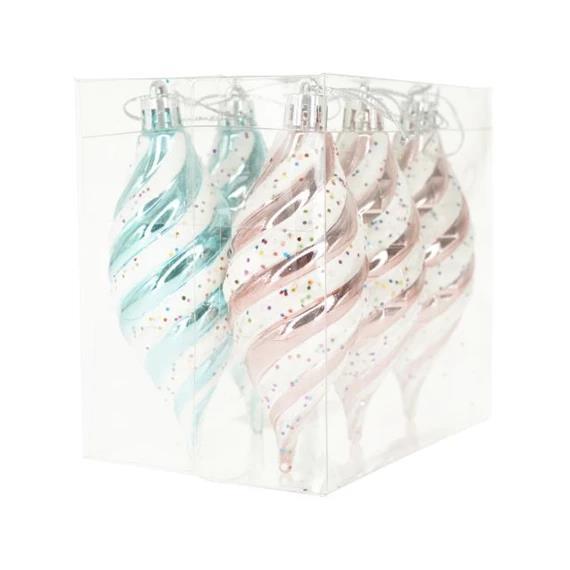 Božični okraski zaviti balončki, z bleščicami, set 6