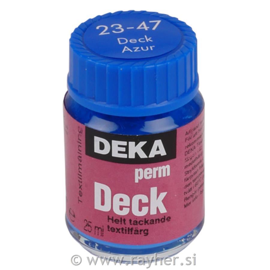 Barve Deka PermDeck so pokrivne barve namenjene poslikavi svetlega in temnega tekstila. Z izdelka, ki ga nameravate poslikati, najprej odstranite apreture. Barve pred uporabo dobro pretresite oz. premešajte. Nanašate jih lahko s čopičem ali z gobico. Ko se barve na izdelku posušijo, jih utrdite z likanjem po hrbtni strani tekstila. Izdelek lahko perete na 60°C.