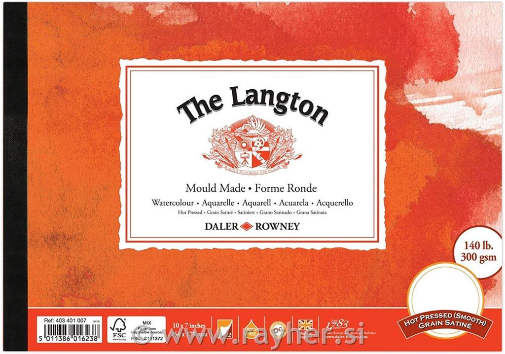 Blok akvarelni Langton 10x7" (254x178mmm) 300g, Hot Pressed, gladka struktura, 12 listov
