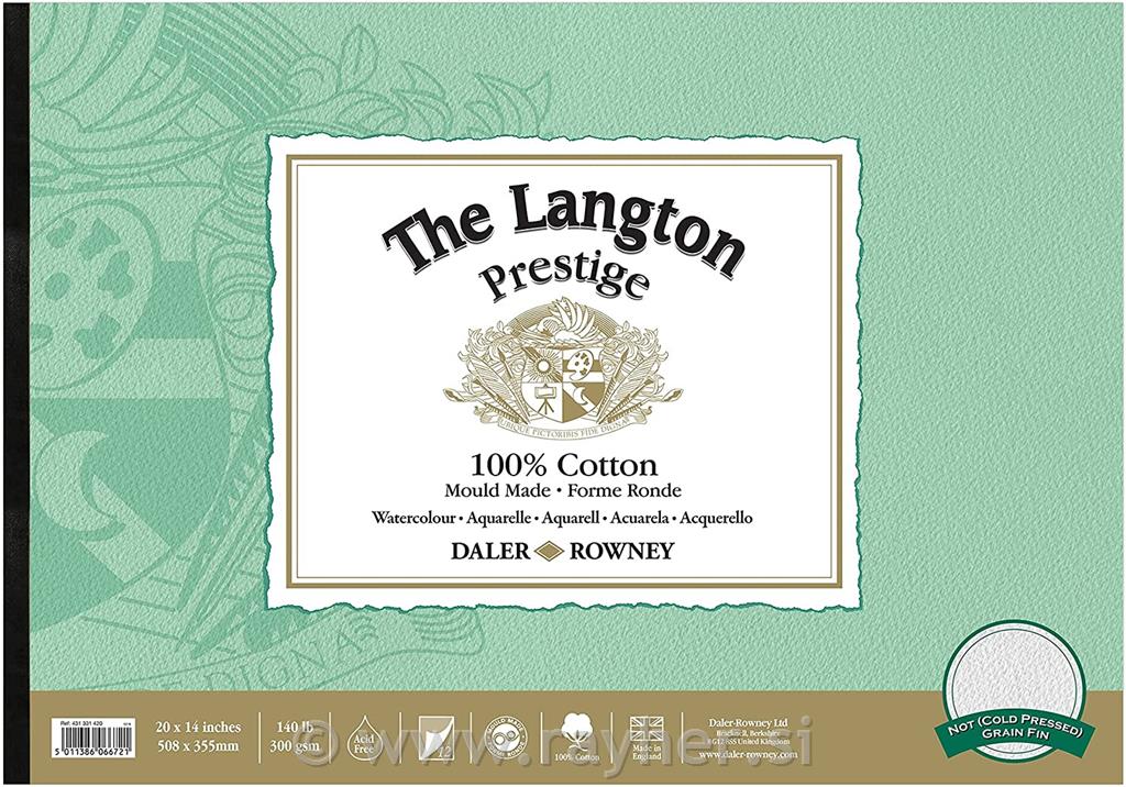 Daler-Rowney Langton Prestige je arhivski visokokakovosten akvarel papir iz 100% bombaža z značilnim mehkim dotikom in naravno belino.