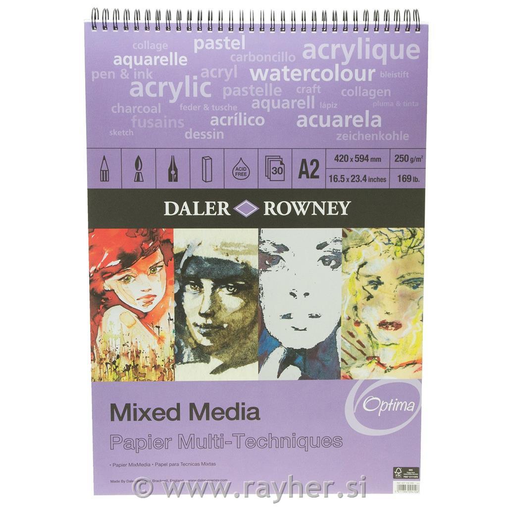 Skicirka spirala Mixed Media 250g A2, 30 listna