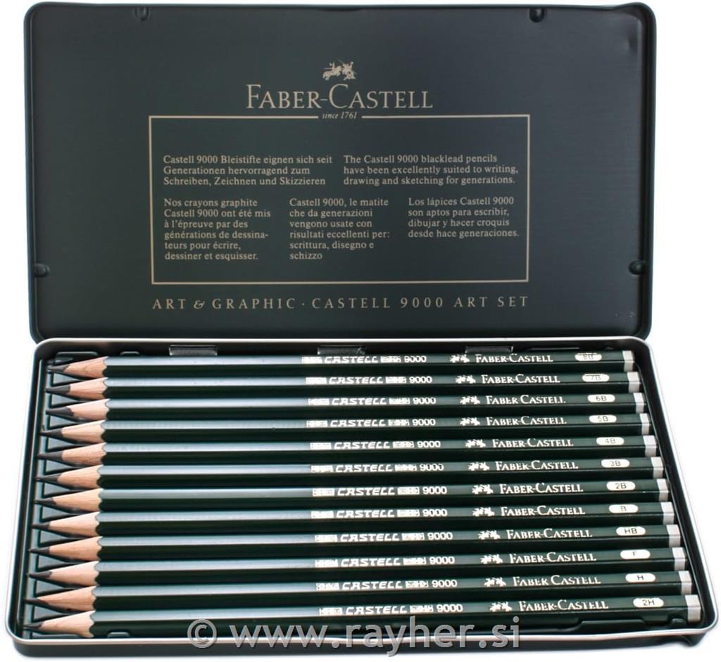 Svinčniki Castell 9000 vrhunski svinčniki iz fino zmletega grafita in gline. Ti gladki svinčniki iz čistega grafita se nikoli ne praskejo in so na voljo v 16 stopnjah trdote svinčnika za pisanje, risanje in skiciranje.
