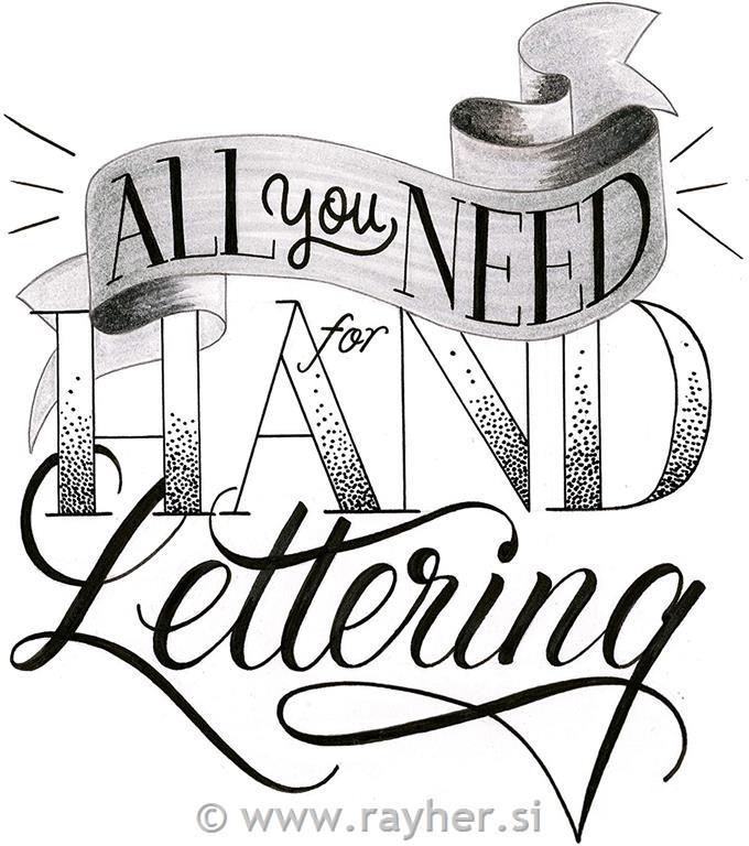 Vse, kar potrebujete za lepopisje: grafitni svinčnik za predhodne skice, Pitt Artist Pen Fineliner za obrise, fine detajle in okraske ter Pitt Artist Pens s konico čopiča za napise, zamahe in zapolnitve.