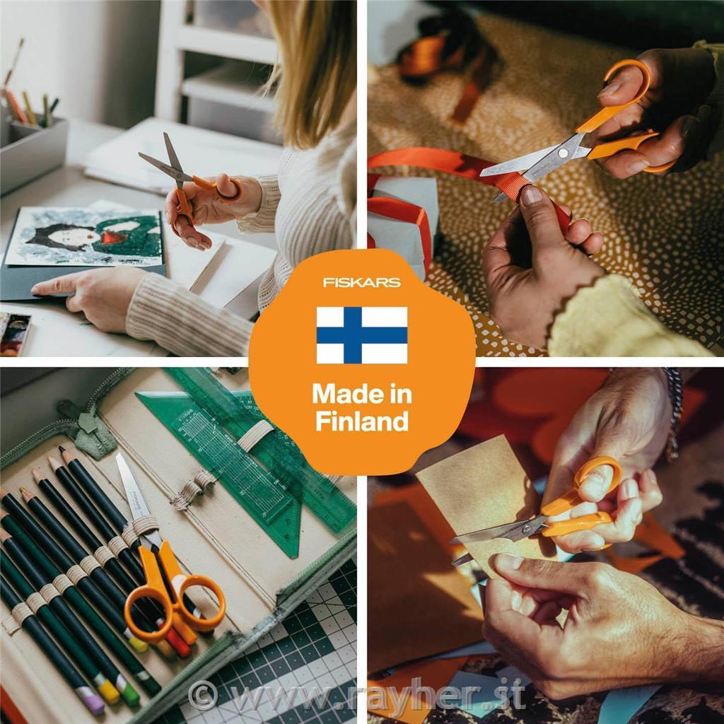 FISKARS Classic hobby škarje 13cm (rezilo: 5,5 cm) za rezanje materialov, kot so ovojni papir, paprji različnih debelin, plastične folije ali dekorativni trakovi. Primerne so tako za desničarje kot levičarje.