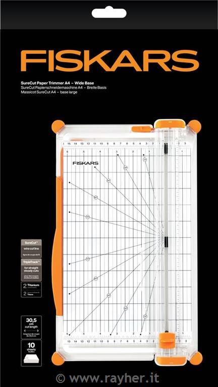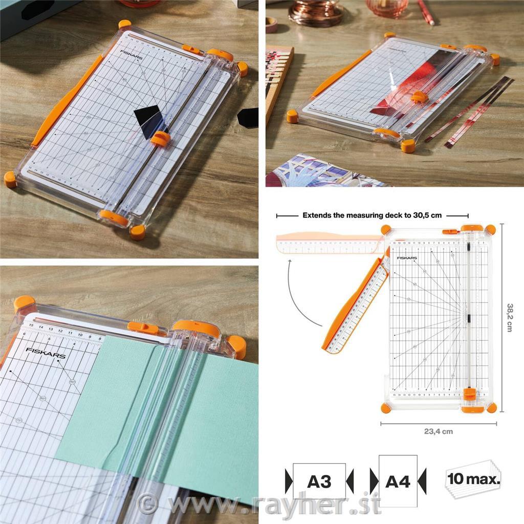 Vsebina kompleta: 1x velik rezalnik papirja Fiskars, 30 cm, A4. Dimenzije: 3,8 × 10,25 × 18 inča, teža: 580 g,