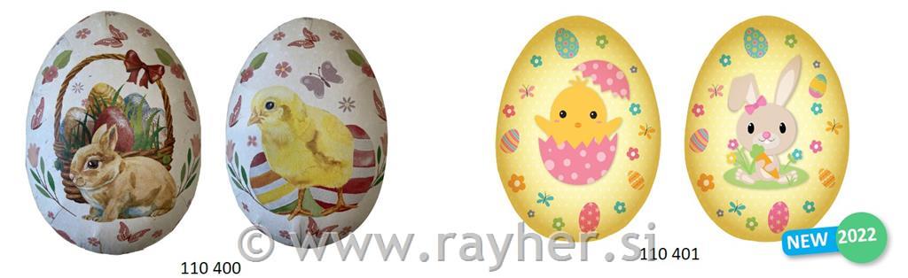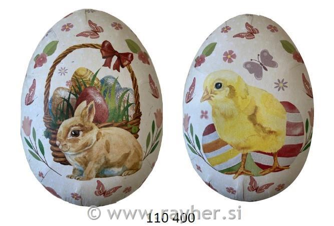 Okrasno jajce je iz kartona in dvodelno. Znotraj je votlo in tako primerno tudi za dekoracijo darila.