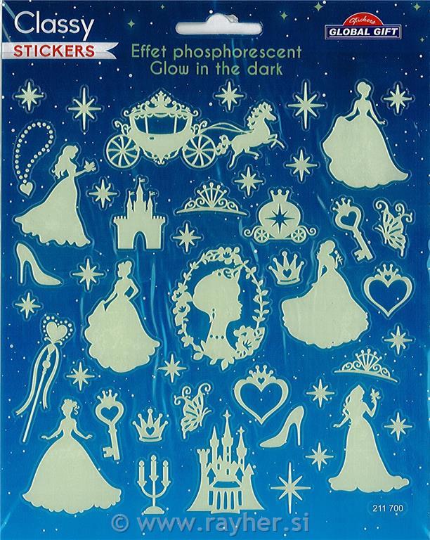 NALEPKE SB15 15X17CM 211700, GLOW IN THE DARK, PRINCESA