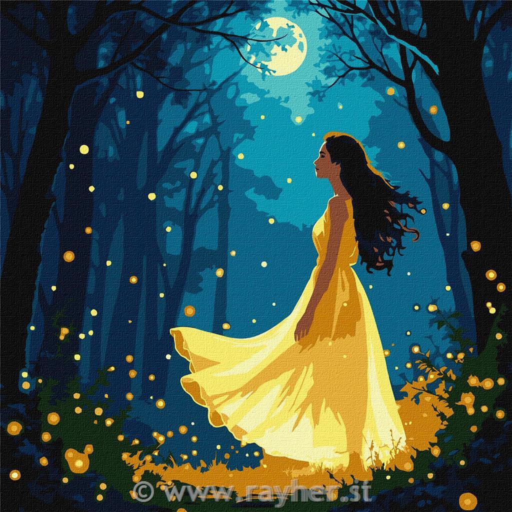 Slikanje po številkah, Girl among fireflies, 30x30cm