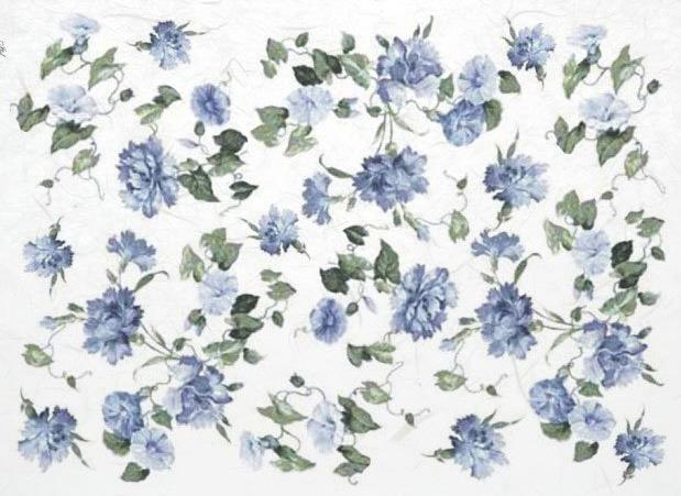 DECOUPAGE PAPIR RIŽEV A4, MODRE CVETLICE