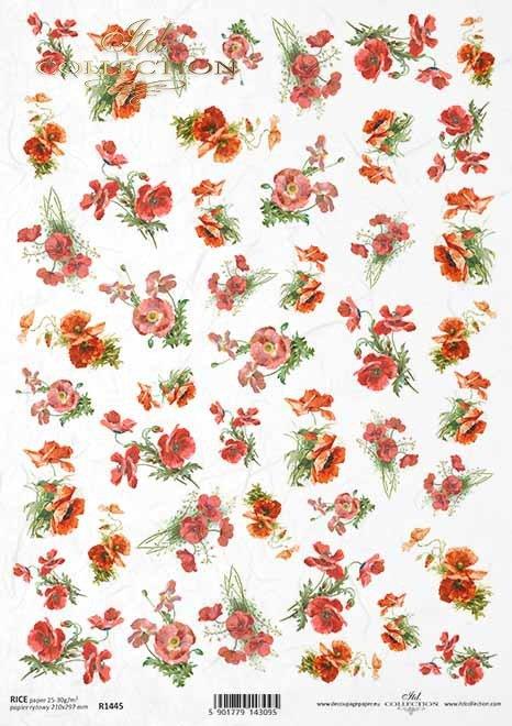 DECOUPAGE PAPIR RIŽEV A4, MAKOVI CVETOVI