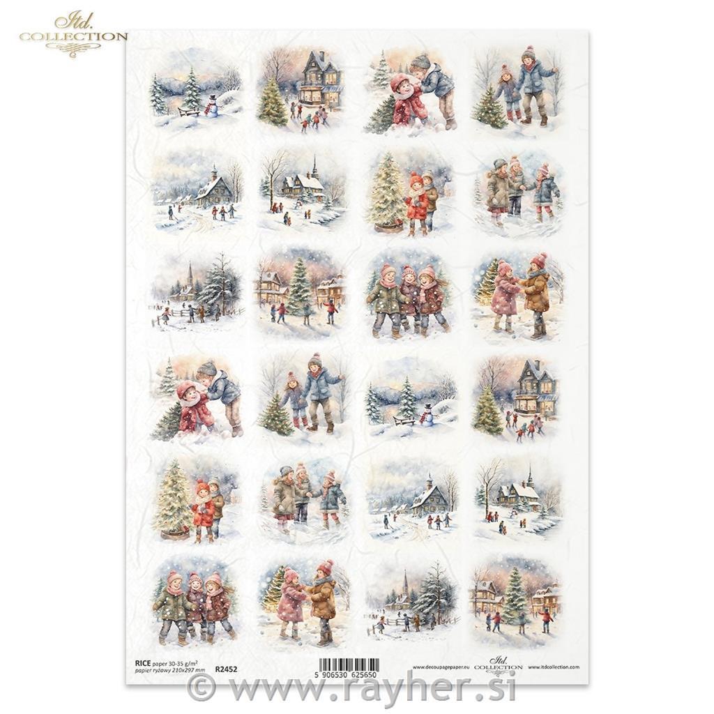 Decoupage papir, rižev A4, Božične scene, 24 motivov