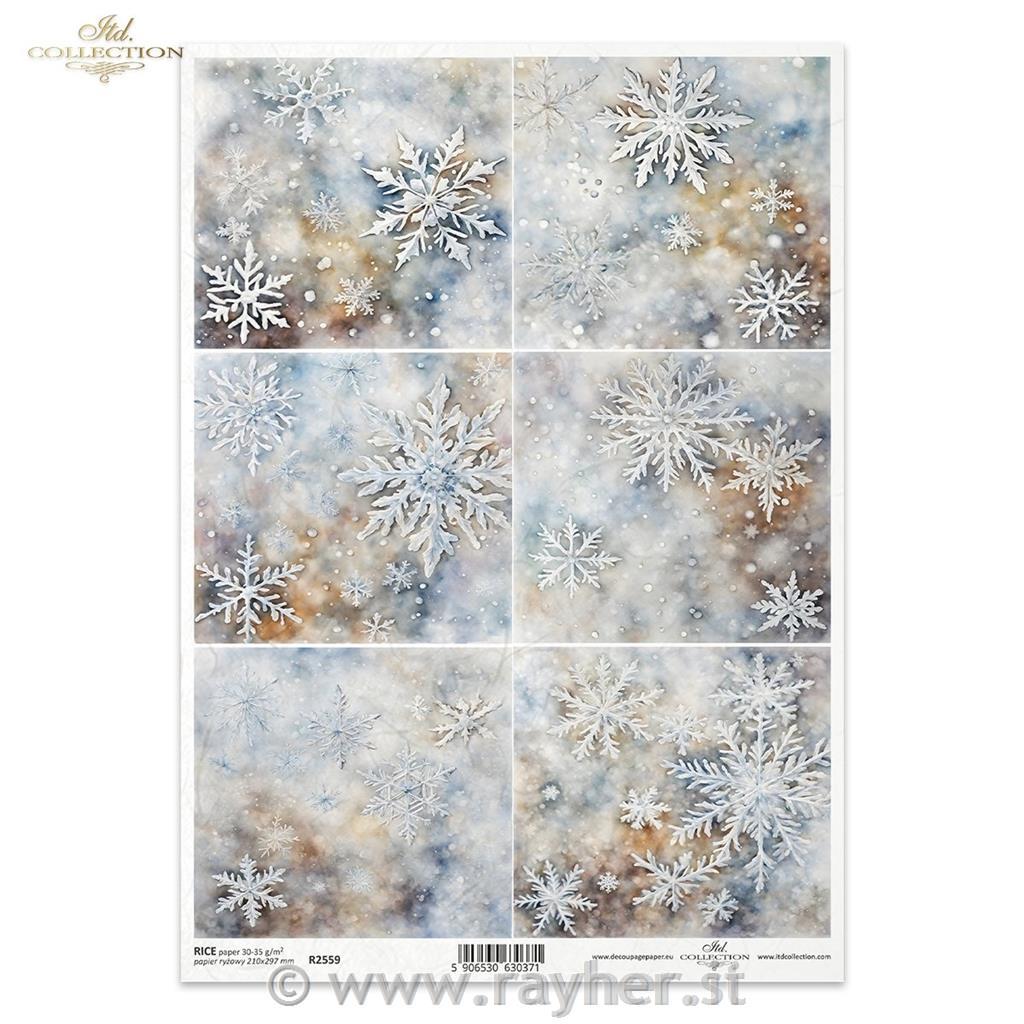 Decoupage papir, rižev A4, Ledene snežinke
