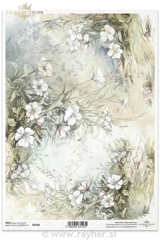 Najboljši papir za uporabo v tehniki decoupage. Zelo tanek in lahek - le približno 30 g / m2, polprozoren, naravno bel s potiskom. Vsebuje značilna, jasno vidna vlakna nepravilnega profila, razporejena v vseh smereh po celotni površini papirja, kar mu daje izviren videz in strukturo. Papir je nenavadno močan in trpežen, v rokah ne razpade. Na podlago (steklo, les, mdf, sveče, papmasche izdelki..) ga je enostavno lepiti s katerim koli lepilom za decoupage ali servietno tehniko. Med okrasitvijo zaobljenih predmetov ga je mogoče nekoliko podaljšati, ko je moker.