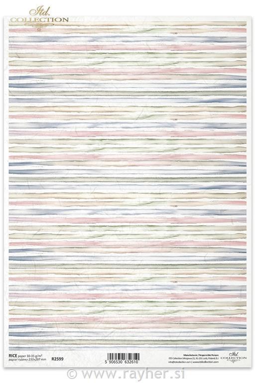 Najboljši papir za uporabo v tehniki decoupage. Zelo tanek in lahek - le približno 30 g / m2, polprozoren, naravno bel s potiskom. Vsebuje značilna, jasno vidna vlakna nepravilnega profila, razporejena v vseh smereh po celotni površini papirja, kar mu daje izviren videz in strukturo. Papir je nenavadno močan in trpežen, v rokah ne razpade. Na podlago (steklo, les, mdf, sveče, papmasche izdelki..) ga je enostavno lepiti s katerim koli lepilom za decoupage ali servietno tehniko. Med okrasitvijo zaobljenih predmetov ga je mogoče nekoliko podaljšati, ko je moker.