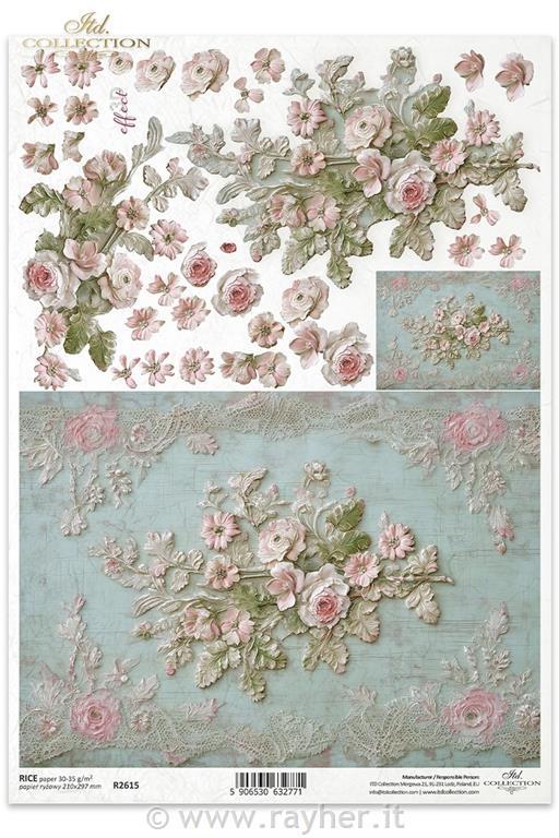 Decoupage papir, rižev A4, Baročno cvetje