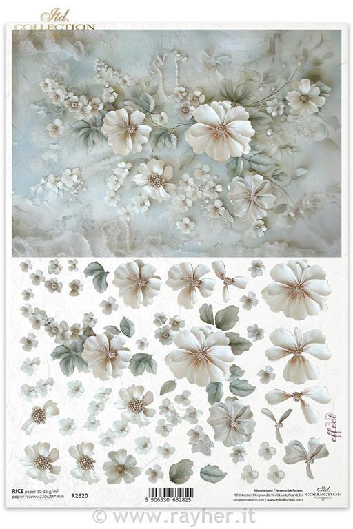 Decoupage papir, rižev A4, Baročno cvetje III