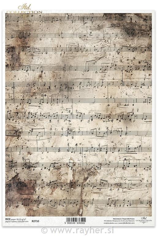 Decoupage papir, rižev A4, Notni zapis
