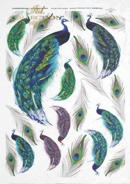 Decoupage papir, rižev A4, Pavje perje