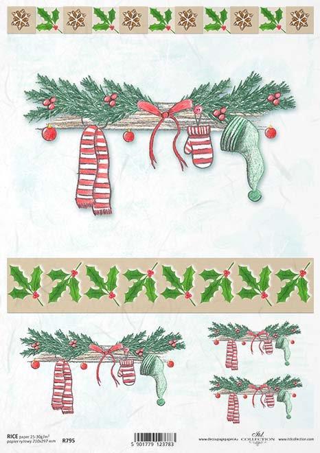 DECOUPAGE PAPIR RIŽEV A4,ŠALI,KAPE,ROKAVICE