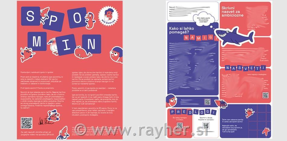 Spomin vsebuje 20 parov kartic in nekateri so si med sabo zelo podobni, da je igra bolj napeta in večji izziv. Motivi so večinoma povezani z morjem in izhajajo iz Nikovih vsebin na Youtube kanalu. Obračali boste kite, delfine, morske pse, konjičke, podmornice in želve ter nekaj glav, ki bodo pošteno preizkusile vašo! Če želite zgodbo Spomina razviti še dlje, lahko na Nikovem Youtube kanalu poiščete motivom pripadajoče vloge in v hipu boste skočili v Južno Afriko, na Tenerife, v Fieso in širili svoja podvodna obzorja.