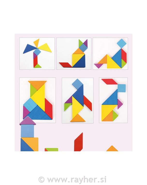 7-delni leseni tangram s 60 kartami in 120 modeli za izdelavo.