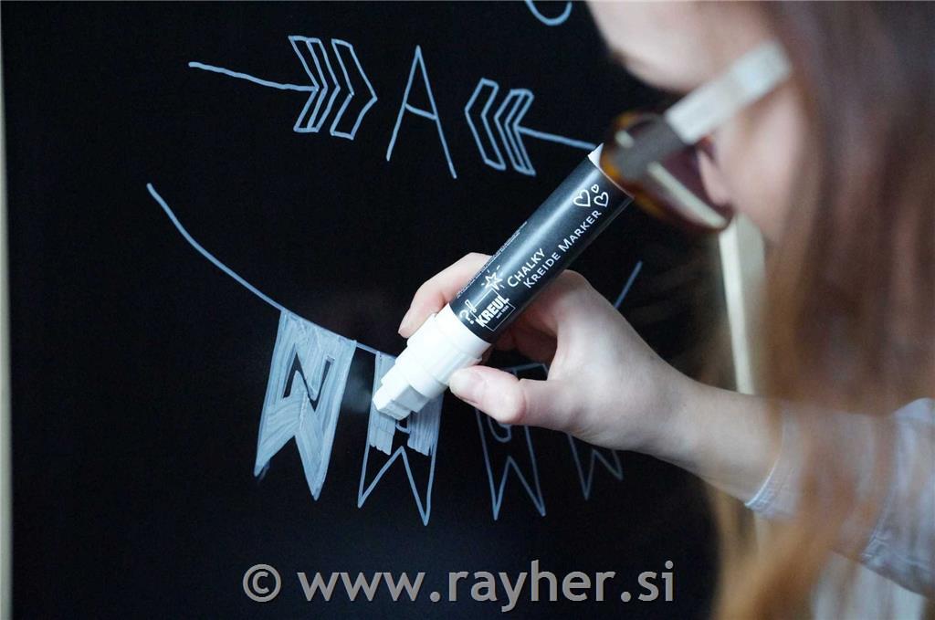 Flomaster z netransparentno in nepermanentno tekočo kredo, ki jo lahko obrišete iz površine (na primer iz stekla)