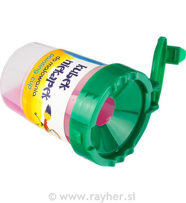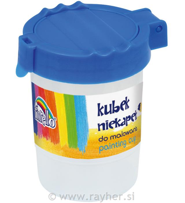 Slikarski lonček s pokrovom odlično ščiti delovno površino. Utori za praktično sušenje čopičev.