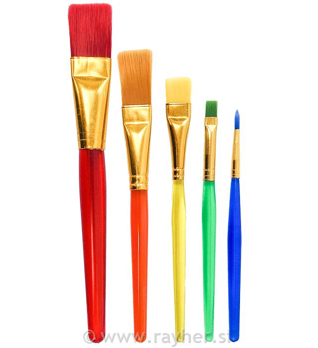 – čopiči s kratkimi barvnimi ročaji iz prozorne plastike