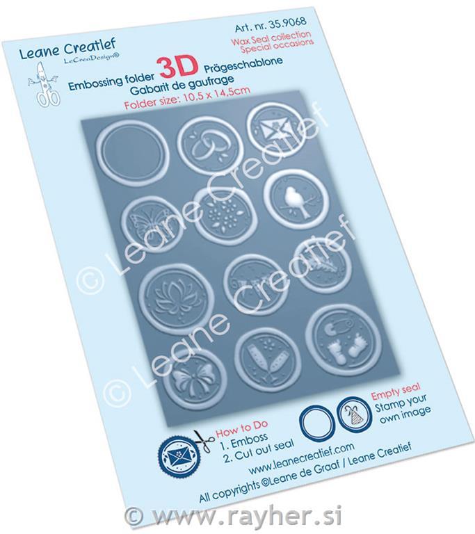 12 različnih pečatov na embosirni plošči velikosti 10,5 x 15,5 cm.