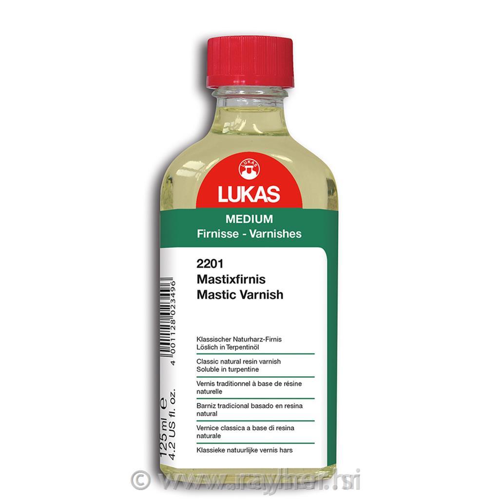 Ena izmed klasik. Rahlo rumenkast, sijajni naravni smolni lak za oljne barve in tempere. Dolgo časa ostane topen v terpentinskem olju. Posuši se do satenastega sijaja. Opomba: Lak iz mastike čez nekaj časa porumeni, kar videz vašega dela približa klasikam, ki so jih naslikali stari mojstri.