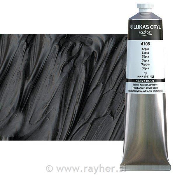 LUKAS CRYL Pastos profesionalne pastozne (heavy body)akrilne barve izpolnjujejo tudi najvišja pričakovanja. Posebej širok barvni spekter 70 briljantnih odtenkov, vključno s tradicionalnimi kobalti in kadmijem. Značilnost LUKAS CRYL PASTOS je posledica zelo visoke vsebnosti trdnih snovi, približno 70%. Z uporabo visokokakovostnega akrilata, čiste akrilatne disperzije, se izognemo morebitnim razpokam in zagotavljamo visoko oprijemljivost. Serija LUKAS CRYL PASTOS kaže svojo posebno moč v tehnikah slikanja s slikarskimi lopaticami in noži ali pri drugih debeloslojnih delih. Barve se lahko redčijo z vodo (še primerneje z ustreznimi mediji) in je primerna za najtanjše glazure. Hitro sušeča akrilna barva Cryl Pastos se posuši v saten sijaj, vodoodporen in elastičen film, ki ne porumeni. Za akrilne barve profesionalne kakovosti Lukas Cryl Pastos so bile uporabljene le najboljše sestavine, ki zagotavljajo idealno sestavo. Najdragocenejši umetniški pigmenti, ki se uporabljajo izključno čisti in neobdelani, zagotavljajo izjemno intenzivnost barve in visoko svetlobno obstojnost. Odličen izkoristek LUKAS CRYL PASTOS se pokaže z mešanjem z belo barvo: potrebna je le majhna količina, da se pokaže jasno barvilo bele barve. Visokokakovostne umetniške akrilne barve se lahko uporabljajo na vseh vpojnih barvah brez maščob in zato ponujajo različne ustvarjalne aplikacije za najvišjo kakovost rezultatov. Vsebuje 1,2-benzizotiazol-3(2H)-on. Lahko povzroči alergijski odziv.