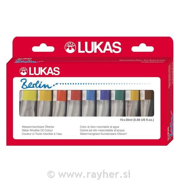 Izkušnja slikanja brez topil - visokokakovostni svetlobno obstojni pigmenti, čudovite barve! LUKAS Berlin vodne oljne barve so popolne barve za delo okoljsko ozaveščenih slikarjev - varnejše za uporabo kot tradicionalne oljne barve, kljub temu pa so rezultati popolnoma profesionalni. Ta linija 40 barv profesionalne kakovosti ima vse odlične lastnosti najbolj priljubljenih oljnih barv, vendar ne potrebuje ostrih kemikalij in strupenih topil. Te barve z novo in izboljšano čistejšo formulo so izdelane iz visokokakovostnih pigmentov in posebnega modificiranega veziva iz naravnih materialov, kot sta laneno in sončnično olje. LUKAS Berlin vodne oljne barve lahko mešate ali redčite neposredno z vodo, dosežete pa popolnoma enake učinke kot pri slikanju s klasičnimi oljnimi barvami. Le da ne potrubejete ostrih kemikalij in topil za njihovo redčenje, mešanje ali čiščenje. Dodatek čebeljega voska daje vsaki barvi gladko masleno konsistenco, s katero je užitek slikati.