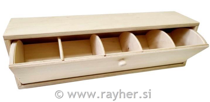 Lesena škatla, 5 razdelkov, 37.5X9cm