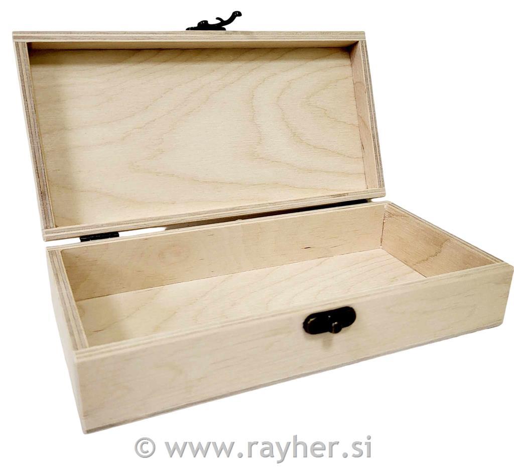Visoko kakovostna lesena škatla izdelana v EU s kovinskim zapiralom.
