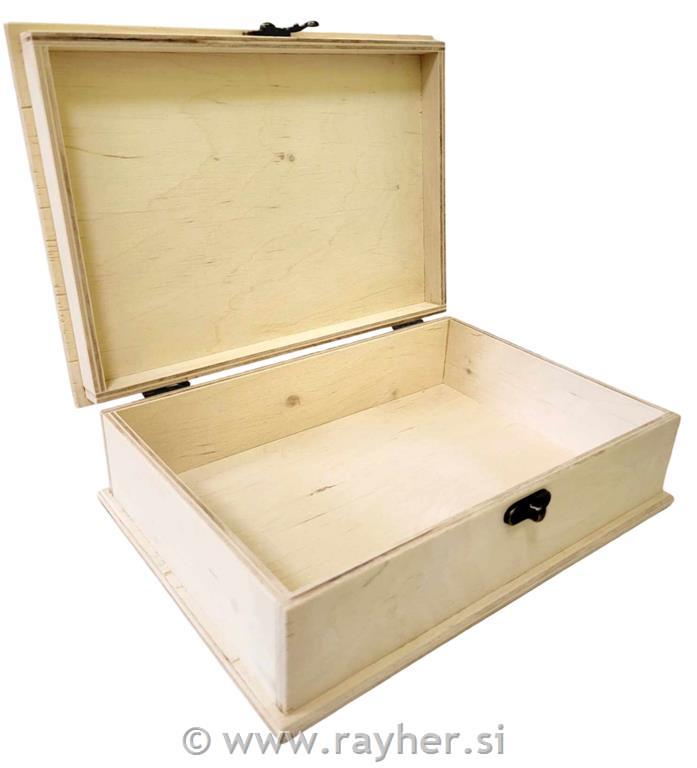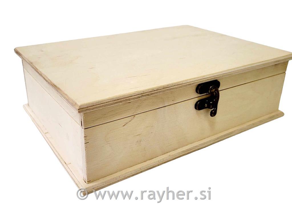 Visoko kakovostna lesena škatla izdelana v EU s kovinskim zapiralom.