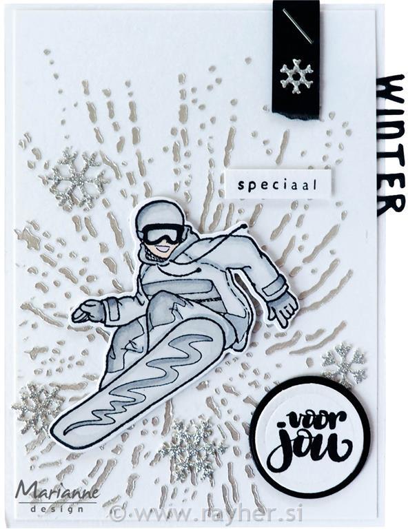 Štampiljke in rezalne šablone: Deskar na snegu, 1x štampiljka, 1x rezalna šablona.