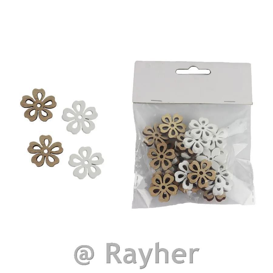 Leseni okrasni cvetki v naravni in beli barvi so prikupen dodatek za različne ustvarjalne in dekorativne projekte. Primerni so za okrasitev voščilnic, darilne embalaže, scrapbooka, aranžmajev ali DIY dekoracij. Zaradi nevtralnih barv se lepo podajo k različnim slogom ustvarjanja.