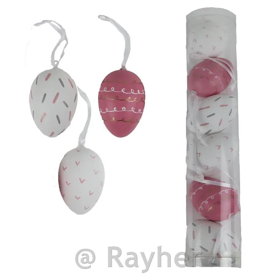 Dekorativna velikonočna jajčka v nežnih belo-rožnatih tonih z drobnimi vzorci. Idealna so za pomladno in velikonočno dekoracijo vejic, aranžmajev, venčkov ali prazničnih miz.