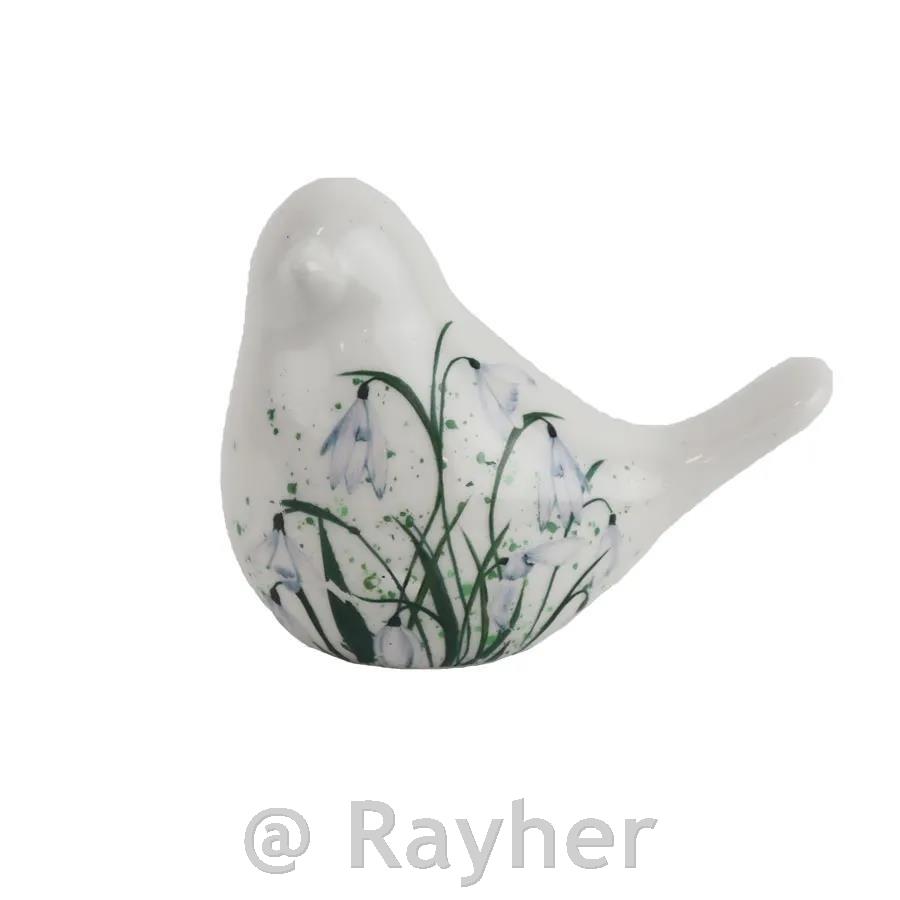 Elegantna dekorativna figurica ptička v nežnih belih tonih, okrašena s fino poslikavo pomladnih zvončkov, prinaša svežino in naravno eleganco v vsak prostor. Lep dodatek za pomladno dekoracijo, police, mize ali aranžmaje.