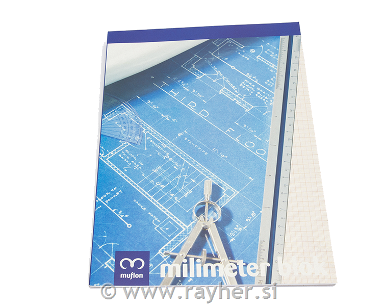 Milimetrski blok dimenzije A3 za tehnično risanje, uporabo pri naravoslovno tehničnih predmetih in projektih.