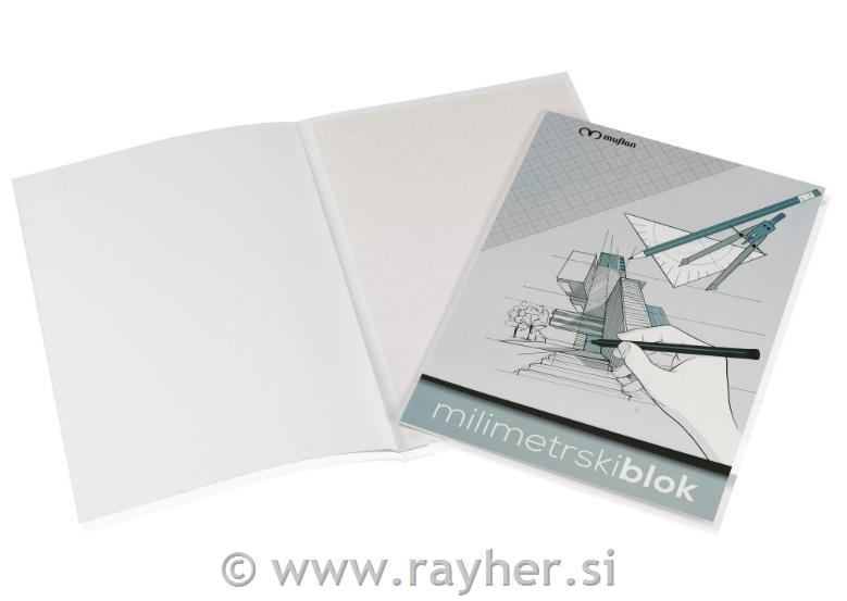 Milimetrski blok dimenzije A4 za tehnično risanje, uporabo pri naravoslovno tehničnih predmetih in projektih.